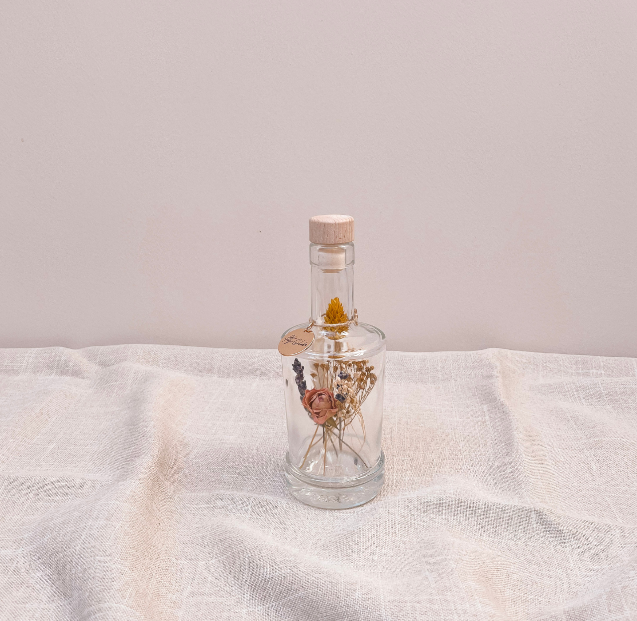 Dit Potje Geluk is met liefde handgemaakt en gevuld met de mooiste, natuurlijke droogbloemen die minstens een jaar en vaak veel langer mooi blijven.
